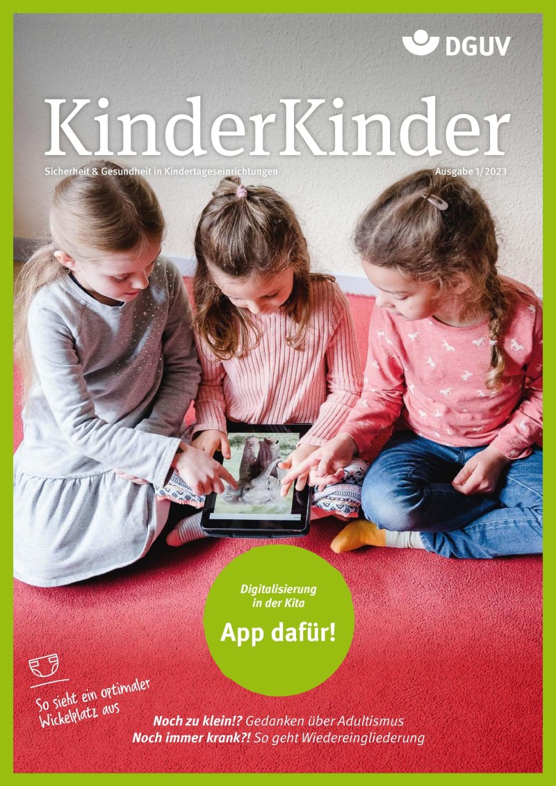 Mehr zum Thema Digitalisierung in der Kita lesen Sie in der neuen Ausgabe von "KinderKinder". Das Magazin für Sicherheit und Gesundheit in Kindertageseinrichtungen erscheint vier Mal im Jahr und wird vertrieben über die regional zuständigen Unfallkassen.