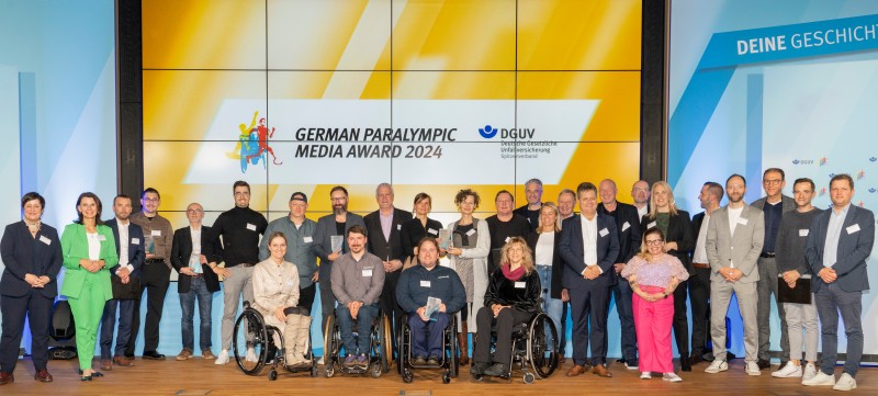 Zum 23. Mal wurde gestern Abend der German Paralympic Media Award (GPMA) in Berlin vergeben. Mit dem Award zeichnet die Deutsche Gesetzliche Unfallversicherung (DGUV) herausragende Berichterstattung über den Breiten-, Rehabilitations- und Leistungssport von Menschen mit Behinderung aus. An der Verleihung nahmen auch Staatssekretär Dr. Rolf Schmachtenberg, Bundesministerium für Arbeit und Soziales, und Jürgen Dusel, Beauftragter der Bundesregierung für die Belange von Menschen mit Behinderung, sowie zahlreiche Abgeordnete des Bundestages und hochrangige Vertreterinnen und Vertreter aus Sport, Wirtschaft und Verbänden teil. Schirmherr der diesjährigen Veranstaltung war Markus Rehm, erfolgreicher Para-Leichtathlet, der im vergangenen Jahr den Sonderpreis des GPMA erhalten hatte.