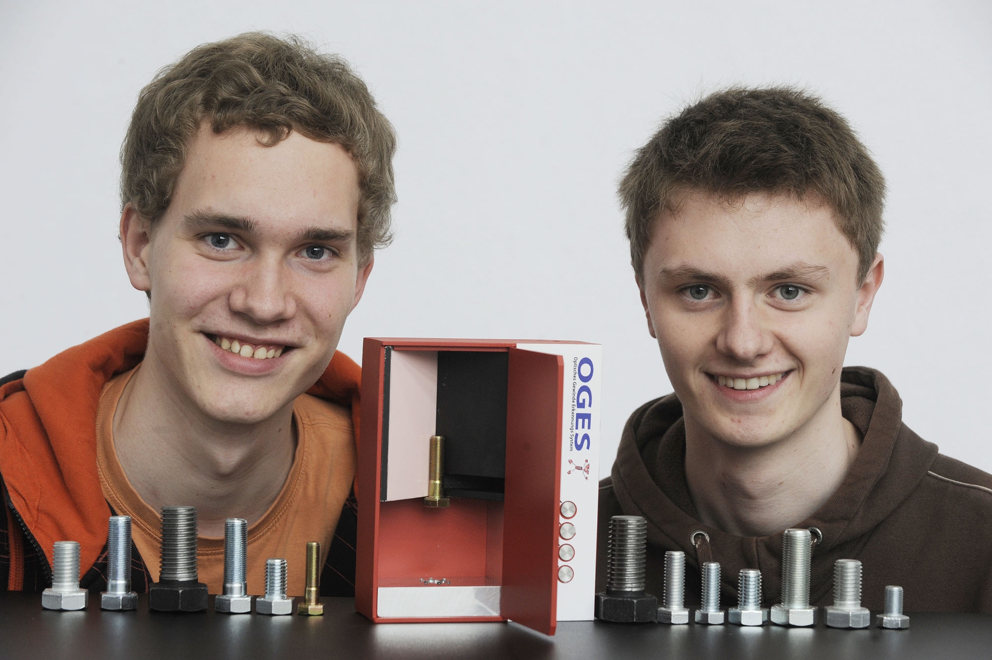 Die Bundespreise im Fachgebiet Arbeitswelt wurden von der Bundesministerin für Arbeit und Soziales gestiftet, Verbände und Stiftungen vergaben weitere Preise. Erste Bundessieger und Preisträger der Deutschen Gesellschaft für zerstörungsfreie Prüfung e.V (JPG, 877 kB) . wurden Tobias Kühfuß (19) und Christopher Dörrer (18) von der Robert Bosch GmbH in Stuttgart. Die Preisträger stellten eine serienreife Vorrichtung und ein Verfahren zum automatischen Bestimmen von Außengewinden aus allen Normsystemen der Welt vor. Kein Abtasten mit Gewindelehren, kein Schieblehreneinsatz, kein Blättern in langen Tabellenwerken mehr: Die Schraube wird in das Gerät eingelegt, der Messvorgang gestartet und nach wenigen Sekunden wird das Ergebnis inklusive des Online-Lieferanten und der Bestellnorm auf dem PC angezeigt.
