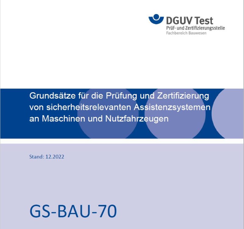 Assistenzsysteme werden heute bereits auf Baustellen, in stationären und mobilen Maschinen eingesetzt. „Die neuen Prüfgrundsätze GS-BAU-70 dienen uns in den DGUV Test Prüf- und Zertifizierungsstellen und auch den Herstellern als eine Art Checkliste, was bei einem sicheren Assistenzsystem in jedem Fall beachtet werden muss“, erklärt Franz Welsch, DGUV Test Prüf- und Zertifizierungsstelle BAU. „Langfristig möchten wir Assistenzsysteme durch Prüfung und Zertifizierung vergleichbar machen in Bezug auf Sicherheit.“