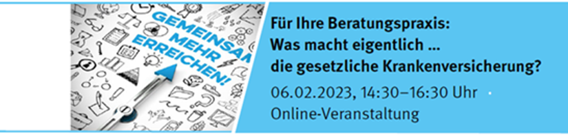 Am 06.02.2023 fand Teil 2 der Online-Seminarreihe "Für Ihre Beratungspraxis – Was macht eigentlich… die gesetzliche Krankenversicherung?" statt.