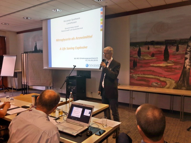 Dr. Cornelius Ruloff (Novasep) während seines Vortrags "Nitroglycerin als Arzneimittel - A Life Saving Explosive"