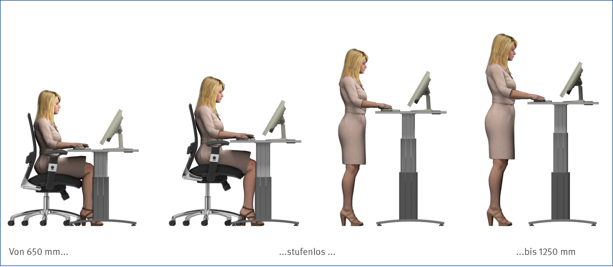 Bewegungsmangel ist eines der größten Gesundheitsrisiken unserer modernen Zeit. Deshalb benötigen gerade Menschen bei der Bildschirmarbeit einen ausreichenden Bewegungsfreiraum.