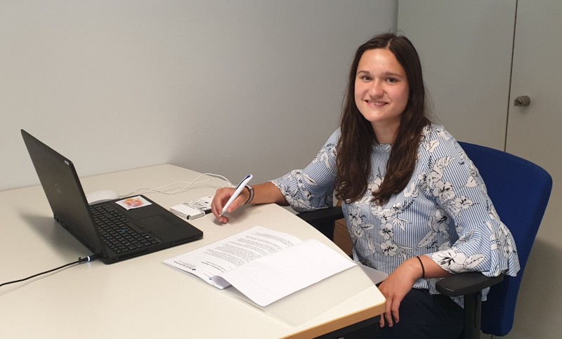 Leona Heußner erstellt eine Power-Point-Präsentation für die HGU. Foto. DGUV