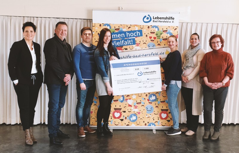 Die über dreißig Tutorinnen und Tutoren haben zusammen mit dem Dekan Prof. Dr. Uwe Sewerin und dem Caterer Christian Rzeczewsky (Catering Rzeczewsky) 1000 Euro gesammelt. Traditionell wird das Geld einer gemeinnützigen Organisation oder sozialen Einrichtung gespendet. Dieses Mal wurde damit das soziale Engagement der Lebenshilfe Bad Hersfeld e.V. zu unterstützt. Ideengeber dieser Aktion war Carsten Beyss, Leiter Planung Studiengänge und Zertifikatsprogramme.