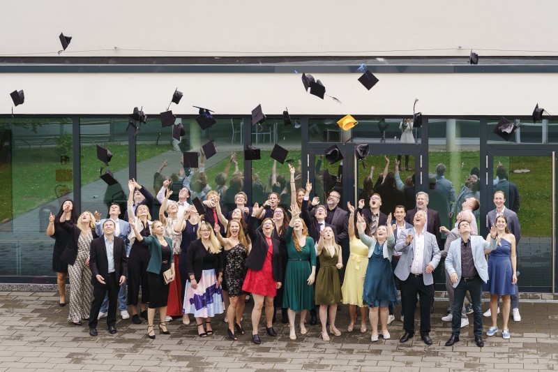 Gruppenfoto der Masterabsolventinnen und -absolventen der HGU in Bad Hersfeld. Quelle: AKIRA / fotografie