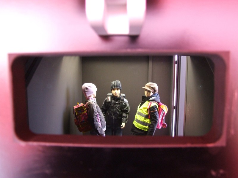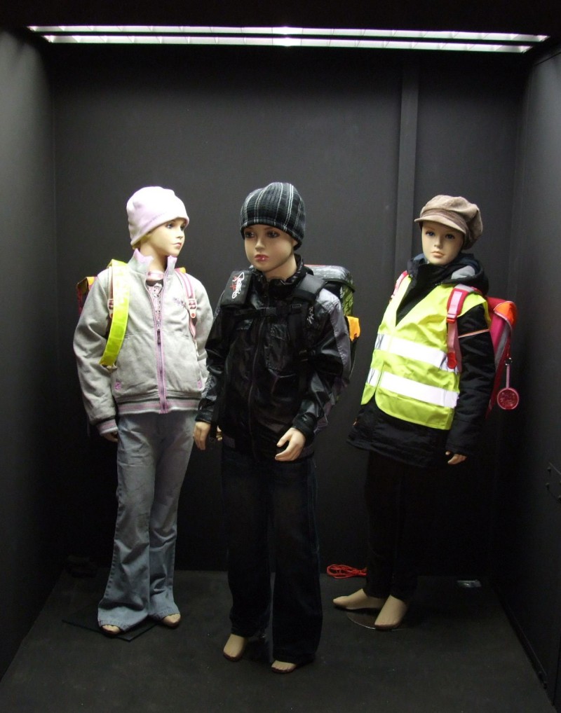 Das Exponat ist ein Kofferanhänger (Pkw-Anhänger), der für die lebenswichtige Sichtbarkeit von Fußgängern und Radfahrern im Straßenverkehr sensibilisieren will. In dem begehbaren Anhänger sieht der Betrachter zwei bis drei lebensgroße Erwachsenen- oder Kinderpuppen, die unterschiedlich gekleidet sind: mit sogenannter normaler Straßenkleidung, auch in helleren Farben, und zum Vergleich mit retroreflektierender Warnkleidung. Über eine besondere Optik lassen sich Entfernungen von 3 und 30 Metern zwischen Betrachter und Personen-/Kindergruppe simulieren. Auch unterschiedliche Lichtverhältnisse können hergestellt werden: Tageslicht, Dämmerung, Dunkelheit.