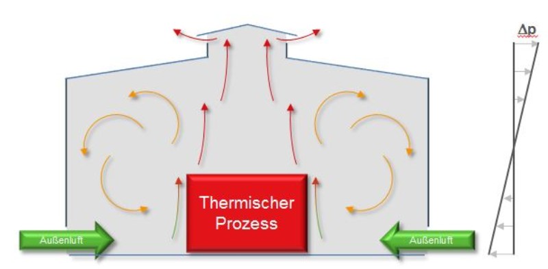 Die freie Lüftung wird häufig auch als natürliche Lüftung bezeichnet. Hierbei erfolgt der Luftaustausch zwischen Innen- und Außenluft über Öffnungen in Außenwänden oder im Dach. Er wird zum einen durch den Winddruck von außen und zum anderen durch innere thermische Auftriebskräfte aufgrund unterschiedlicher Temperaturen der Innen- und Außenluft bestimmt. Da sich die Witterungsbedingungen sehr häufig ändern, kann mit dieser Art der Lüftung kein kontinuierlicher Luftaustausch über das gesamte Jahr hinweg gewährleistet werden. Darüber hinaus weist die freie Lüftung weitere Nachteile auf:
