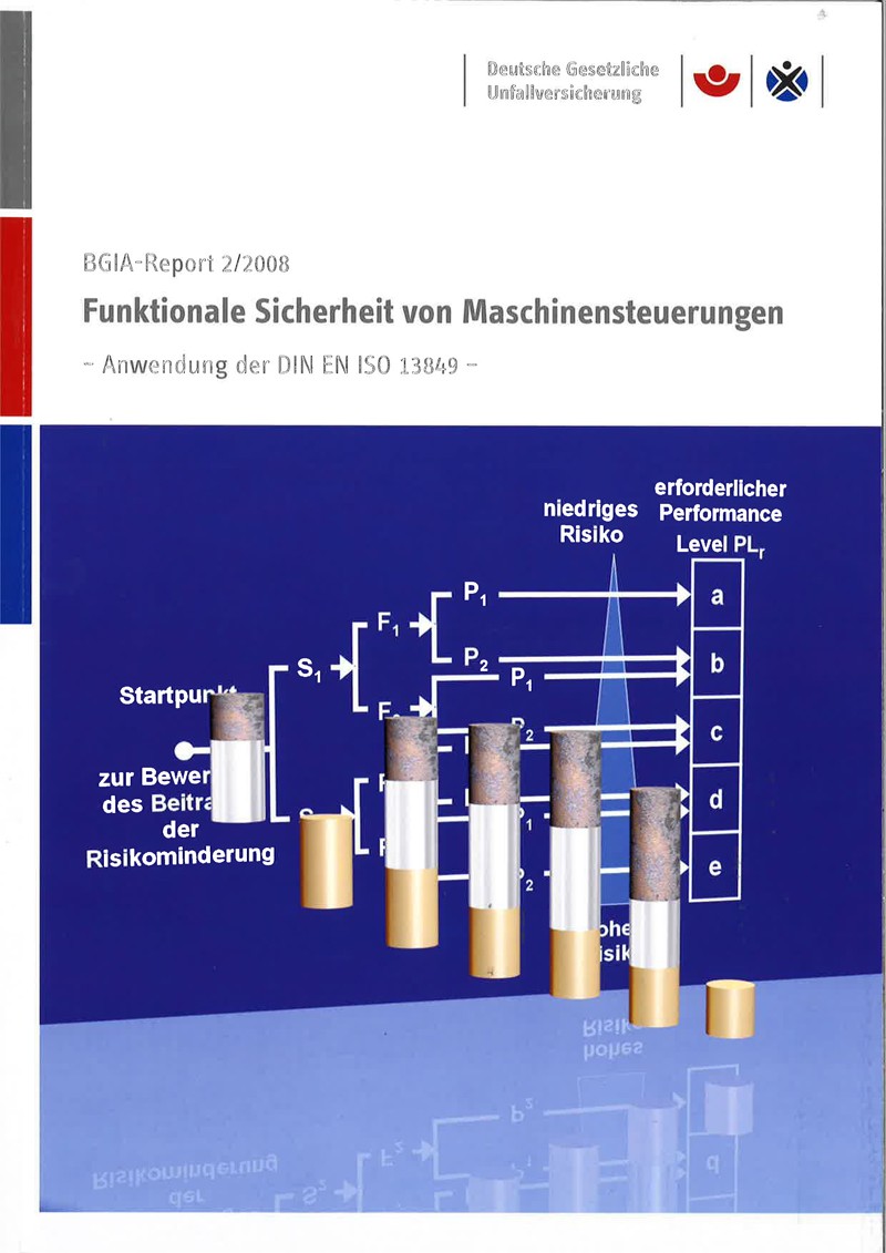 Hauke, M.; Schaefer, M.; Apfeld, R.; Bömer, T.; Huelke, M.; Borowski, T.; Büllesbach, K.-H.; Dorra, M.; Foermer-Schaefer, H.-G.; Grigulewitsch, W.; Heimann, K.D.; Köhler, B.; Krauß, M.; Kühlem, W.; Lohmaier, O.; Meffert, K.; Pilger, J.; Reuß, G.; Schuster, U.; Zilligen, H.: Funktionale Sicherheit von Maschinensteuerungen - Anwendung der DIN EN ISO 13849 (BGIA-Report 2/2008).