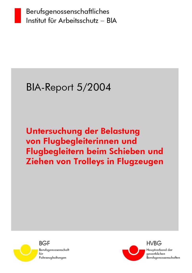 Untersuchung der Belastung von Flugbegleiterinnen und Flugbegleitern beim Schieben und Ziehen von Trolleys in Flugzeugen (BIA-Report 5/2004)