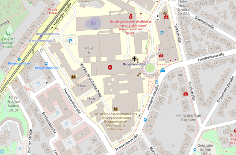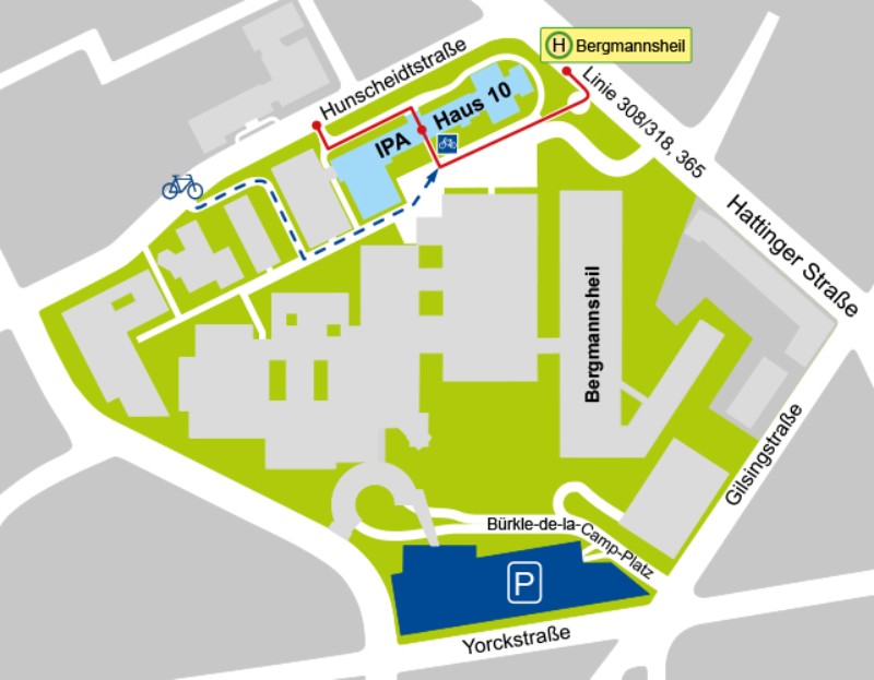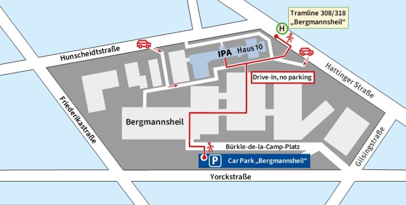 Take tram no. 308/318 from Bochum central station, direction Hattingen/Dahlhausen and get off at "Bergmannsheil"